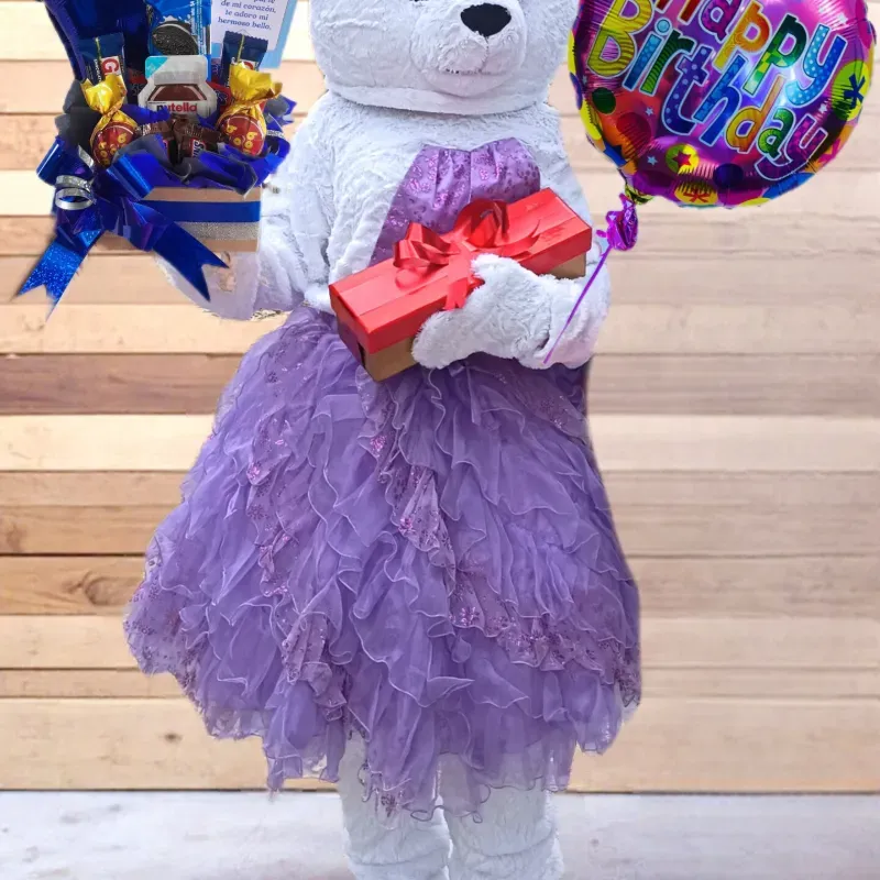 Se hace la entrega de una Caja de Confituras y globo para cumpleaños. Se lee una dedicatoria especial, Se canta Feliz cumpleaños y pose para fotos poniendo una canción dedicada que usted desee.