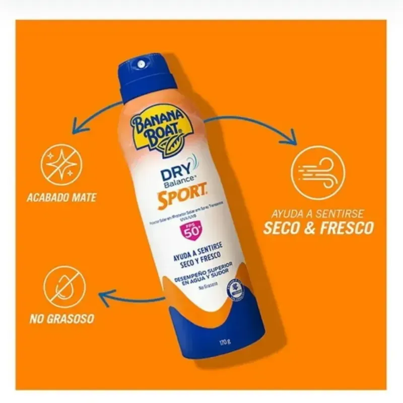 Banana Boat Dry Balance Sport en C-Spray, es un protector solar ideal para las actividades al aire libre, te ayuda a sentirte seco y fresco, mientras te protege de los rayos del sol.