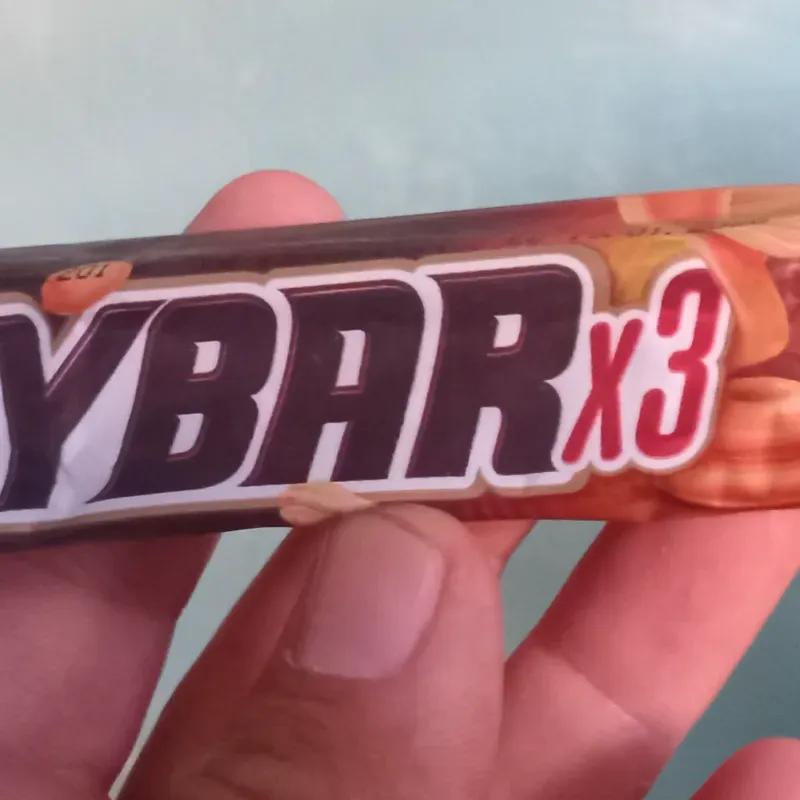 Barra chocolate con crema leche en el centro y Mani