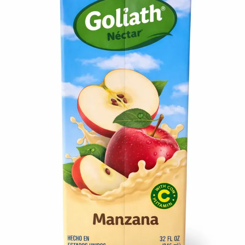 Este es un néctar de fruta envasado en un contenedor de cartón con tapa de rosca.
