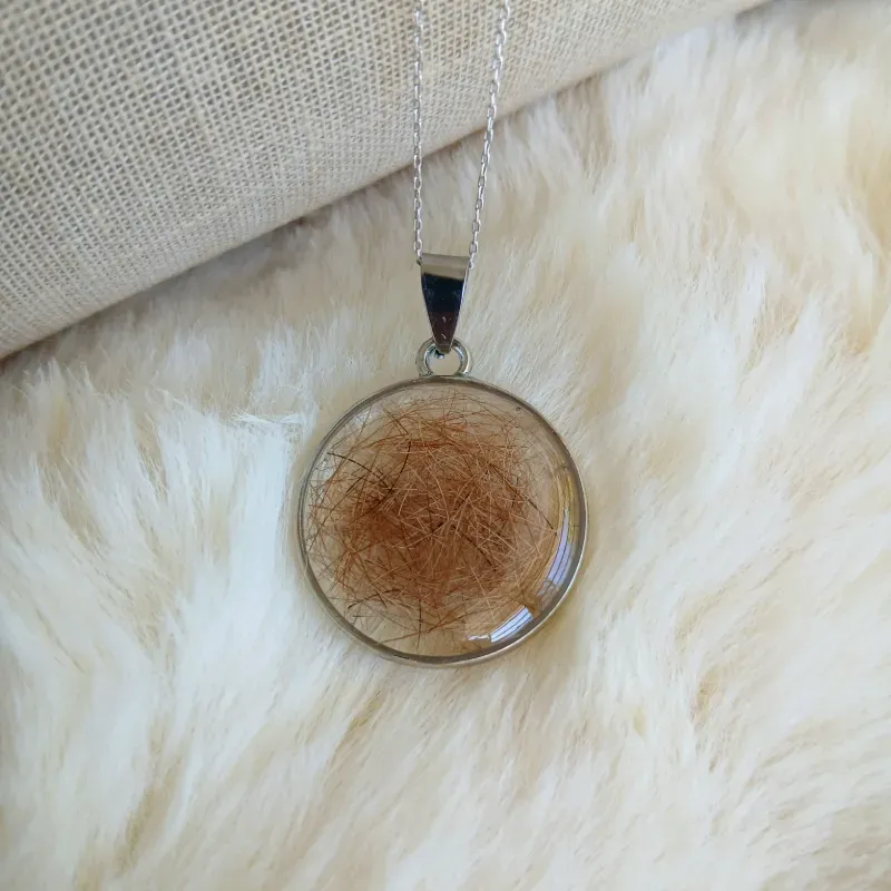 Dije de aro de acero plateado, con foto o cabellos encapsulados, y enganche plateado
