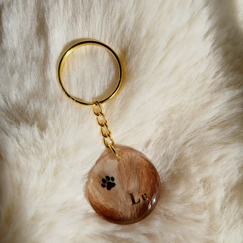 Una pieza de resina UV, con cabellos encapsulados, de 3 cm de diametro, herraje plateado o dorado