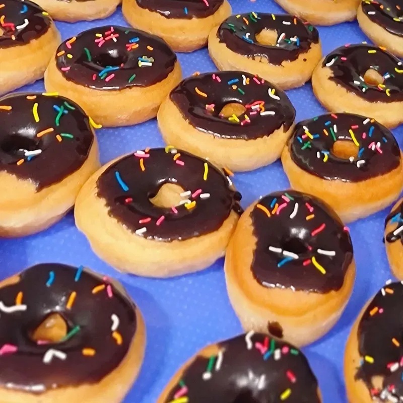 Dona tamaño grande cubierta de chocolate con grajea de colores