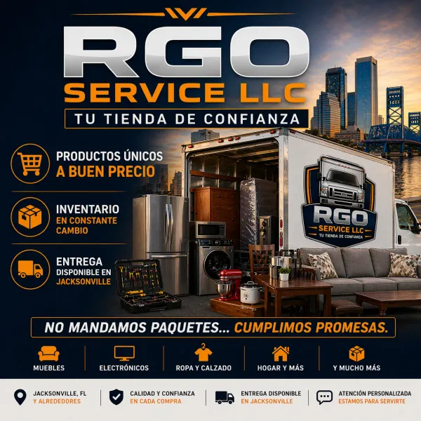 RGO Service es una tienda enfocada en ofrecer productos variados a precios accesibles, incluyendo muebles, electrónicos, ropa, calzado, artículos para el hogar y más. Nuestro inventario proviene de liquidaciones y subastas, lo que nos permite ofrecer productos únicos y en constantes rotación. Nos especializamos en brindar buenas ofertas, productos funcionales y oportunidades que no siempre se encuentran en tiendas tradicionales. .- Servicios de entrega local disponible en Jacksonville. .- Inventario en constante cambio. .- Precios competitivos. RGO Service LLC - No mandamos paquetes, cumplimos promesas.