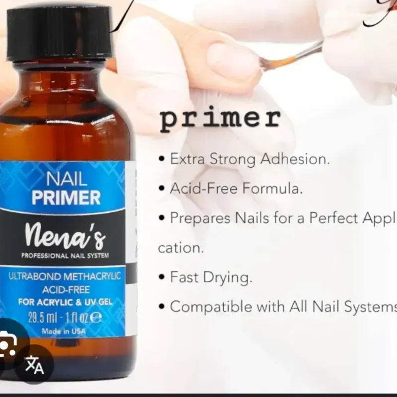 El primer es el producto maravilloso que no debe faltar en tus arreglos con acrílico, gel, Polygel, gel de construcción etc. Su función es adherir los productos mencionados anteriormente a la uña natural, evitando desprendimiento, levantamiento prematuro y por ende los hongos q puede traer la humedad .