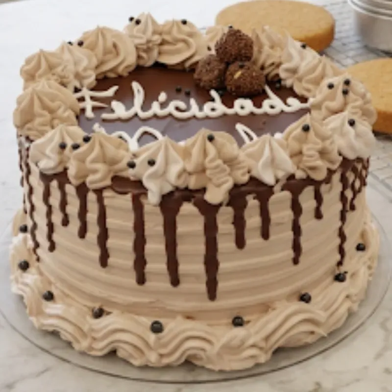 Panetela de chocolate con doble relleno de chocolate. Cobertura y merengie de chocolate.