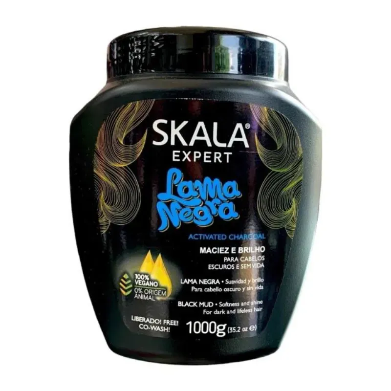 Mascarilla "Lama Negra" con carbón activado: aporta suavidad y brillo a cabellos oscuros y sin vida. Fórmula 100% vegana, ideal para co-wash. Presentación 1000 g