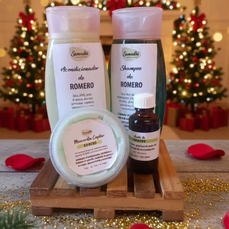 NutriciĂłn intensa desde la raĂz hasta las puntas. Lavado: Shampoo y Acondicionador de Romero ​Tratamiento: Mascarilla Capilar de Romero ​Finalizado: Aceite de Romero