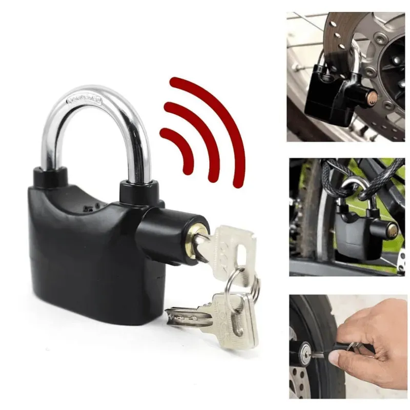 Candado grande con alarma compuesto por 3 llaves, baterías de repuesto e includas. Marca : S.P.C Color : 🖤