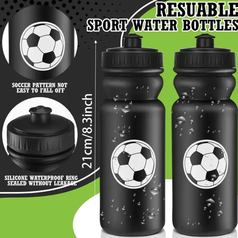 Botella de agua de fútbol de 20 onzas, reutilizable, con tapa extraíble, diseño de pelota de fútbol, impresión UV, duradera y portátil para gimnasio, viajes, fiestas, baloncesto, rugby, béisbol, botella de agua deportiva, hidratación de fiestas, botella deportiva elegante, botella de agua reutilizable.