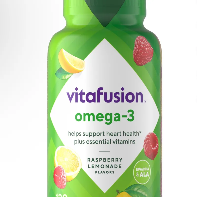 vitafusion Vitaminas Gomosas Omega-3, Sabor Limonada de Bayas, Vitaminas para la Salud Del Corazón(1), 120 Unidades