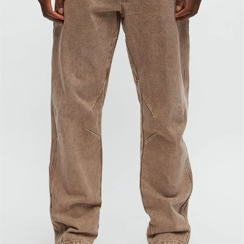 Jean Marrón zippers laterales traseros