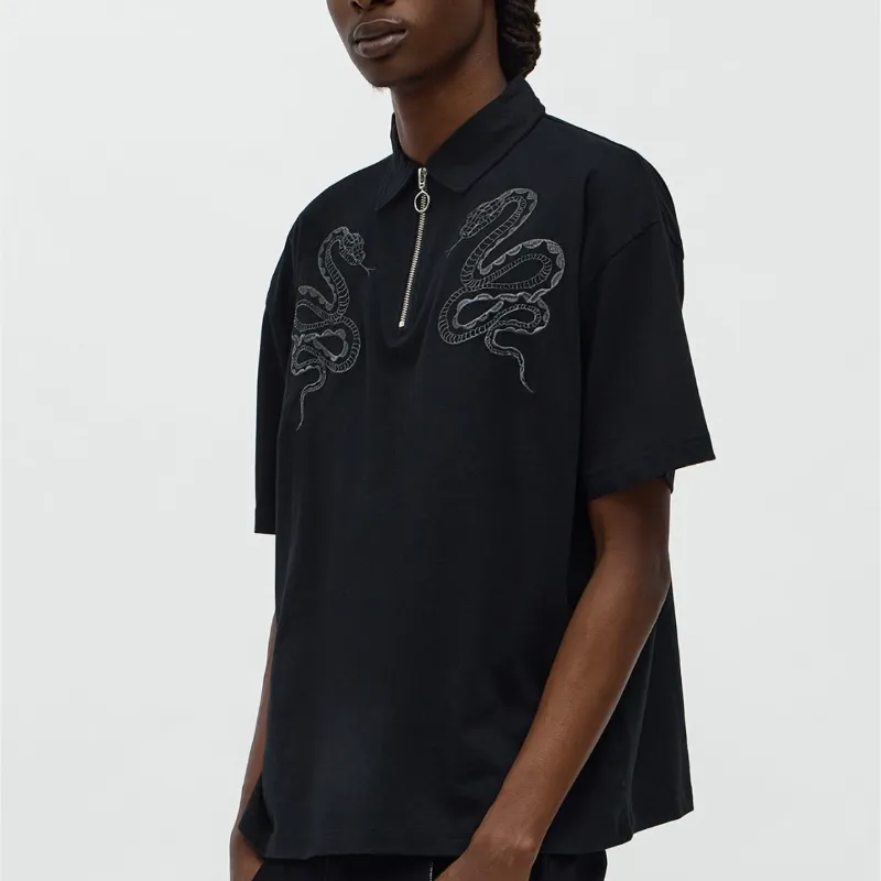 Polo con estampado de serpientes bordadas