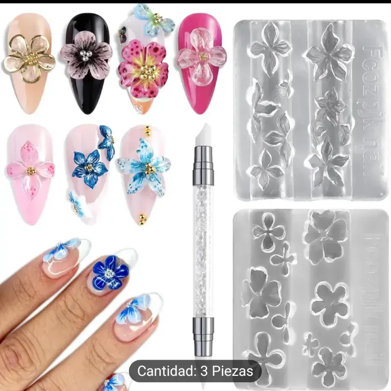 Moldes de silicona para decoración de uñas, moldes 3D de flores con adornos para uñas y plantilla de modelado transparente con pluma para tallar, moldes de diseño de flores de hibisco y flor de cerezo para resina epoxi, suministros profesionales