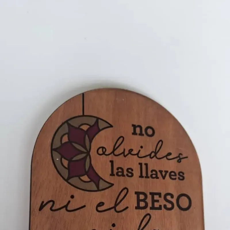 Es un objeto funcional y decorativo que combina utilidad con un recordatorio cálido y positivo para salir de casa con lo esencial y con buen ánimo.