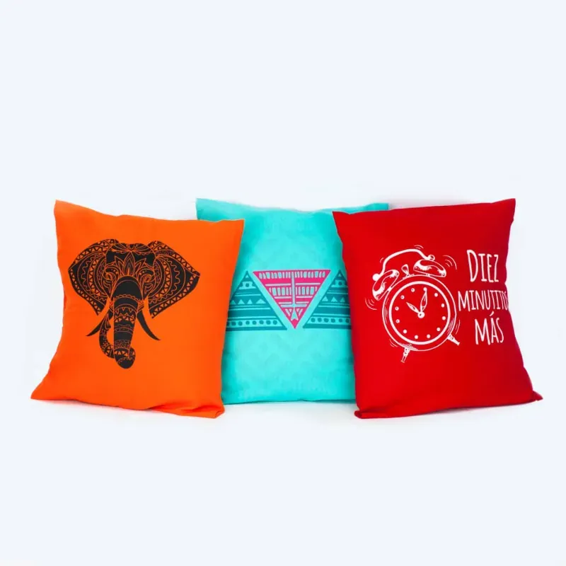 Forro de poliéster tamaño 40x40 CM, con cierre de dos tapas que permite colocar y quitar con facilidad el forro a la vez que es seguro. Disponible en diferentes colores y gráficas relacionadas con temas generales y amor.