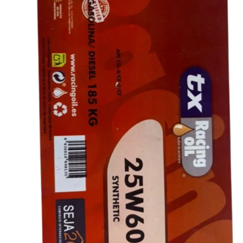 TX Racing Oil 25W-60 200ltsAceite Sintético Compatible con Castrol Alta protección para motores modernos: formulados para motores de gasolina y diésel, incluyendo los más tecnológicamente avanzados Excelente resistencia al desgaste en condiciones exigentes de temperatura y carga Control de depósito y limpieza interna del motor, ayudando a mantenerlo limpio y eficiente980.00 USD