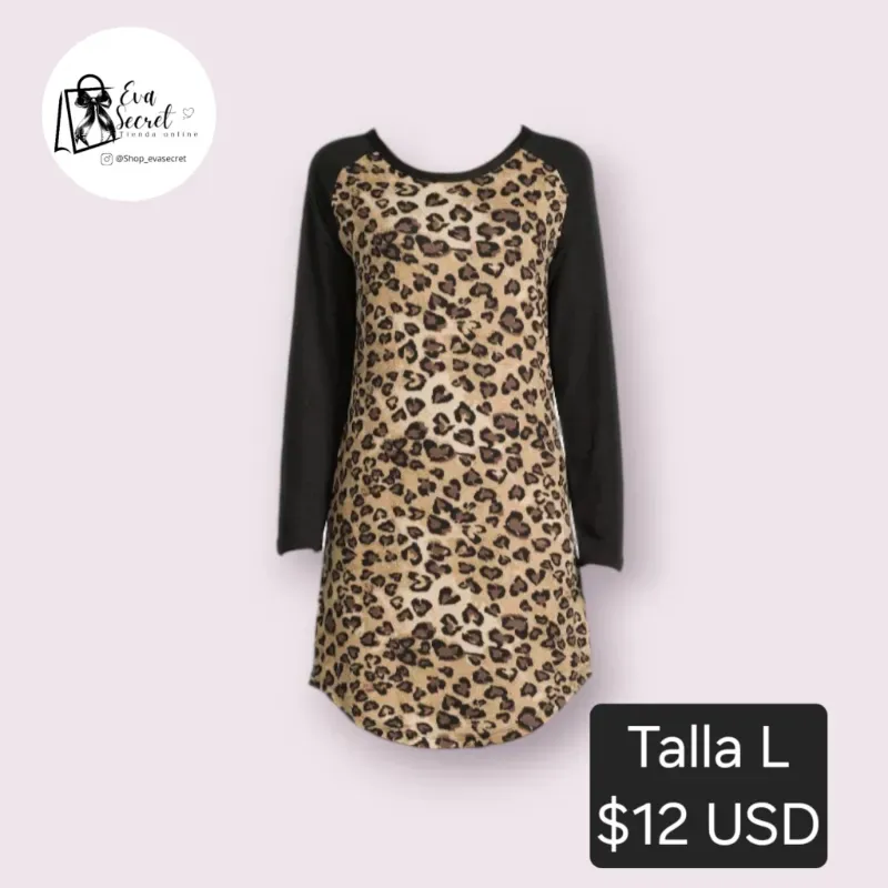 Vestido mangas leopardo talla L