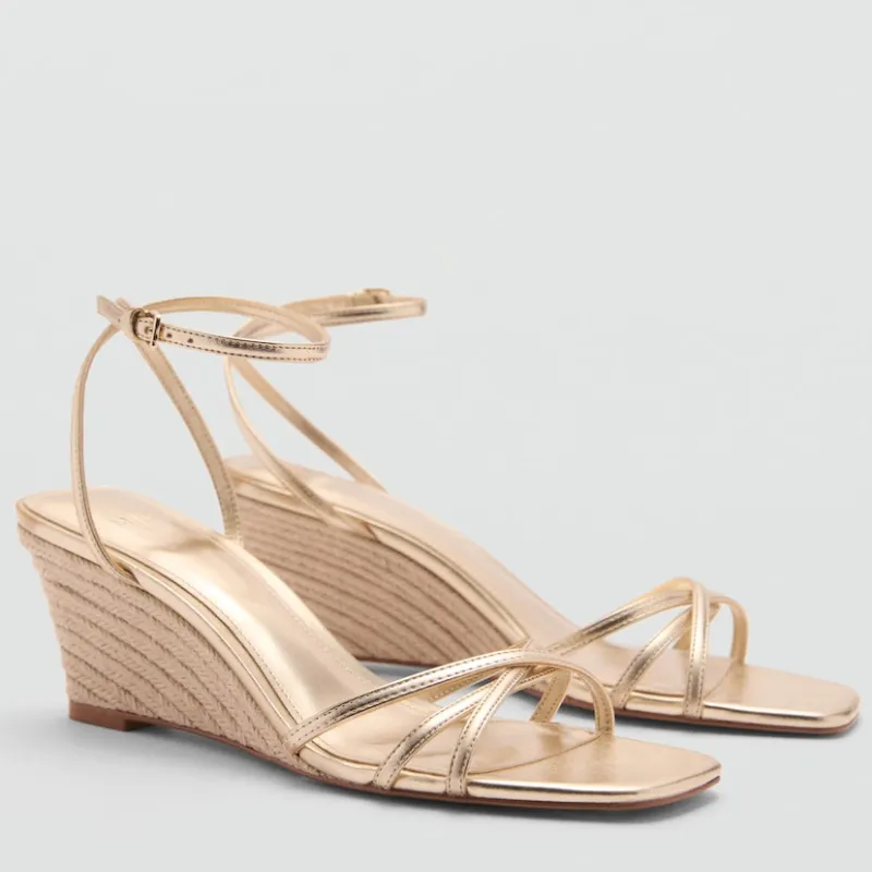 Sandalias tiras metalizadas cuña