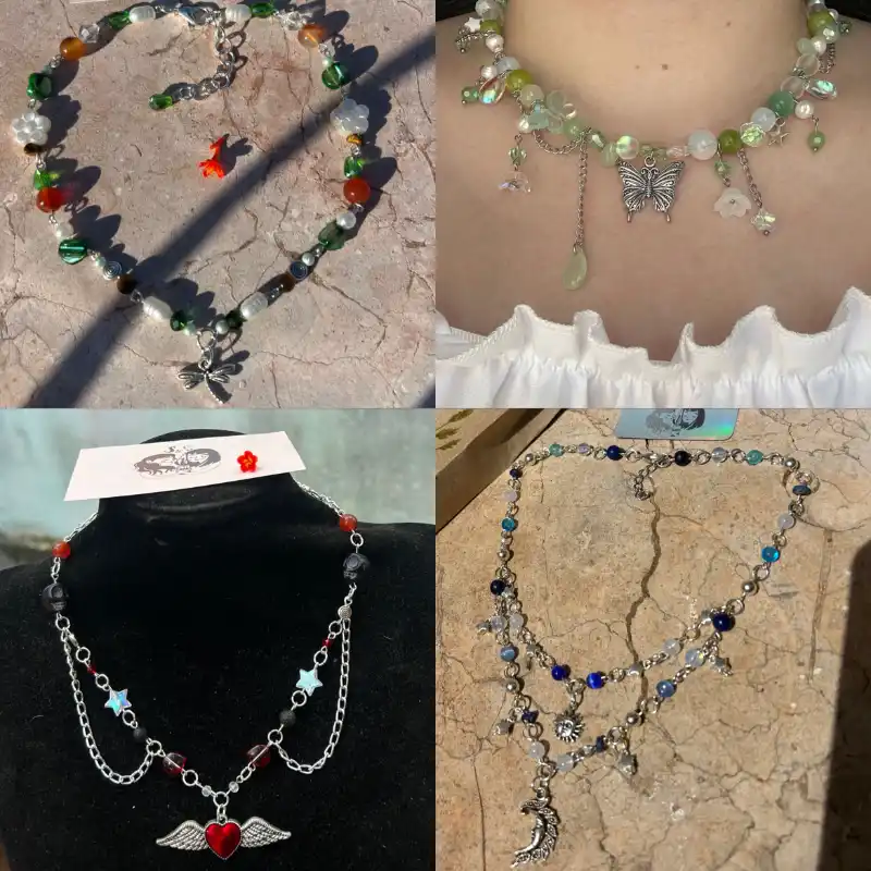 Collares🌬️Pulseras🌜Bolsas/tote bag/carteras👛Velas🕯️Cordoncitos para Celular/Carteras/Accesorio⭐️Aretes🌚Pintura a mano👩🏻🎨Llaveros🌙Frasquitos🫙✨🧚🏻Anillos🪐Accesorios para el pelo👩🏻🦰Cordones para gafas/nasobuco/audifonos🌞Tobilleras🌊Cadenitas para la cintura👙Stikers de @draw_my_Journal🧚🏻♀️Papelería🔖Sonajeros y móviles de viento 🎐Accesorios para zapatos 👟Otras cositas🪩