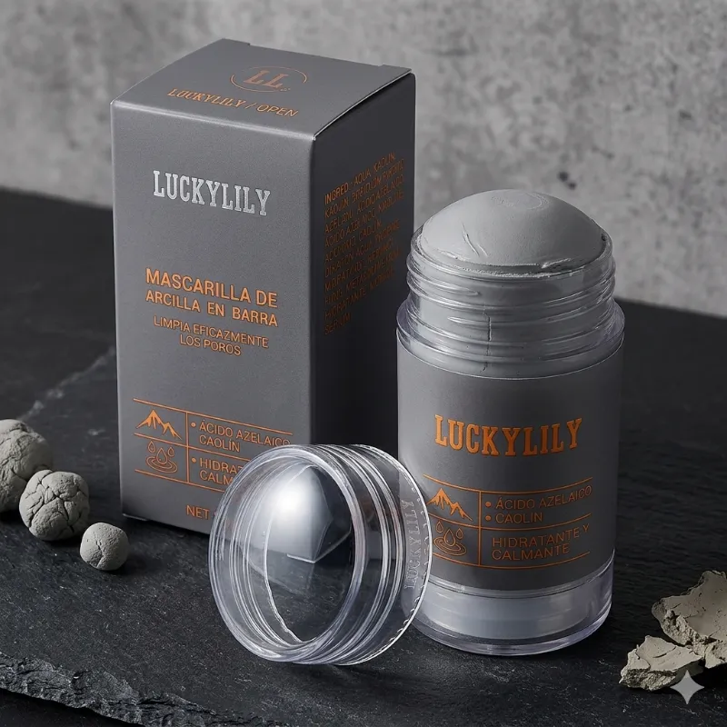 La mascarilla en la imagen es una mascarilla facial de la marca LUCKYLILY que contiene ácido azelaico y ácido hialurónico. El ácido hialurónico es conocido por sus propiedades hidratantes y anti-envejecimiento.