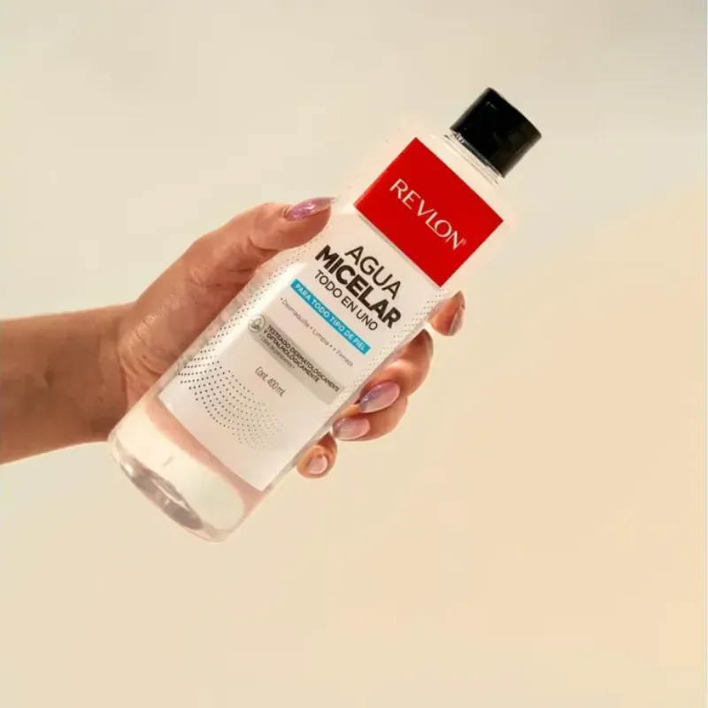 El agua micelar Revlon todo en 1, es un limpiador facial práctico y eficaz que elimina maquillaje, impurezas y exceso de grasa sin necesidad de enjuague. Su fórmula suave respeta el equilibrio natural de la piel, dejándola limpia, fresca e hidratada. Es apta para todo tipo de pieles, incluso las sensibles, y puede usarse tanto en el rostro como en ojos y labios. Con su presentación de 400 ml, es ideal para el uso diario, facilitando una rutina de cuidado completa y sencilla.