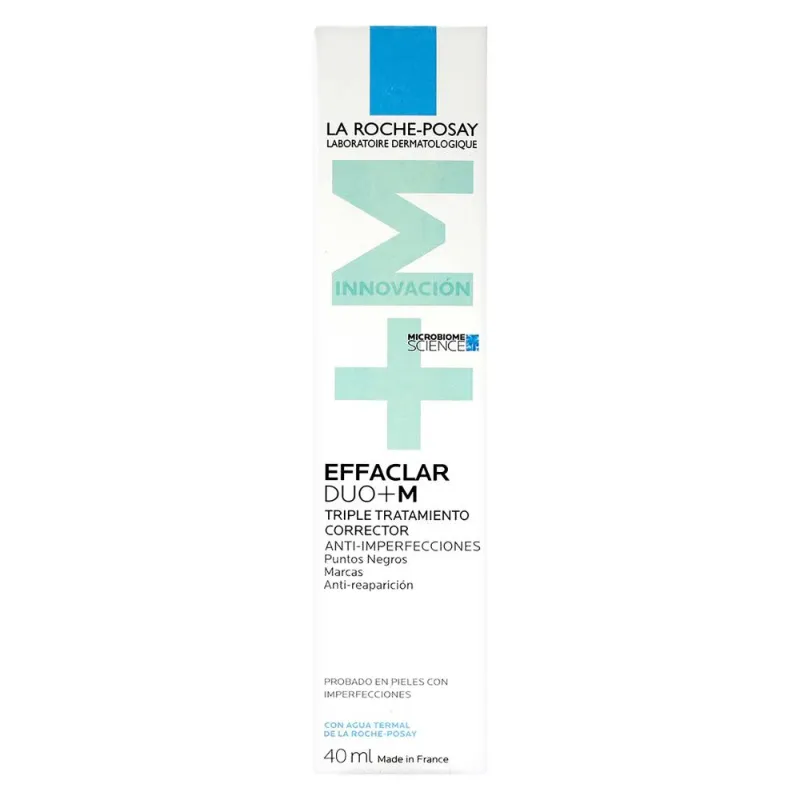 Tratamiento Anti-Imperfecciones Effaclar Duo + M de La Roche Posay, cuidado corrector triple anti-imperfecciones para pieles grasas y con tendencia a las imperfecciones, potenciado con la ciencia del microbioma.
