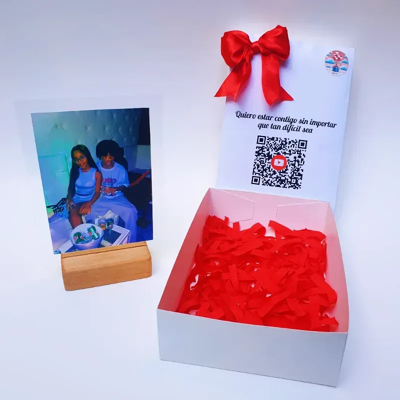 -Cajita personalizada con código QR, el cual te llevará directamente al vídeo que quieras dedicarle a esa personita especial 🥰