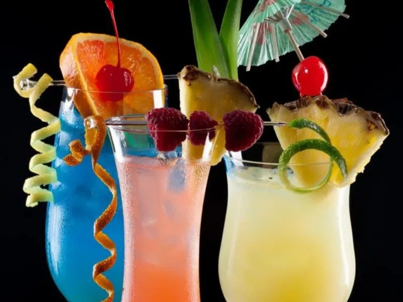 Jugos de naranja, limón, piña y granadina, un sirope de granada y azúcar.