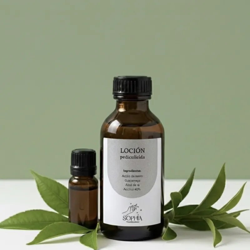 Cómo todos sabemos la pediculosis es la afección en la que pequeños insectos infestan el cuero cabelludo, generalmente afecta a los niños que están en contacto directo entre sí, o cuando se comparten objetos personales, como peines, sombreros o bufandas. Nuestra Loción está elaborada a base de alcohol al 40%, aceite de neem, guacamaya y árbol de té y es perfecta para prevenir la infestación por piojos y favorecer la eliminación de estos parásitos de forma completamente natural. Recomendaciones: No abusar del producto. Contraindicaciones: Alergia demostrada al principio activo de las plantas utilizadas en la elaboración del producto. Modo de uso: Se aplica en el cuero cabelludo cubriendo con un paño por 40min. Aplicar dos veces por semana durante dos o tres semanas seguidas. Cantidad: 60 ml