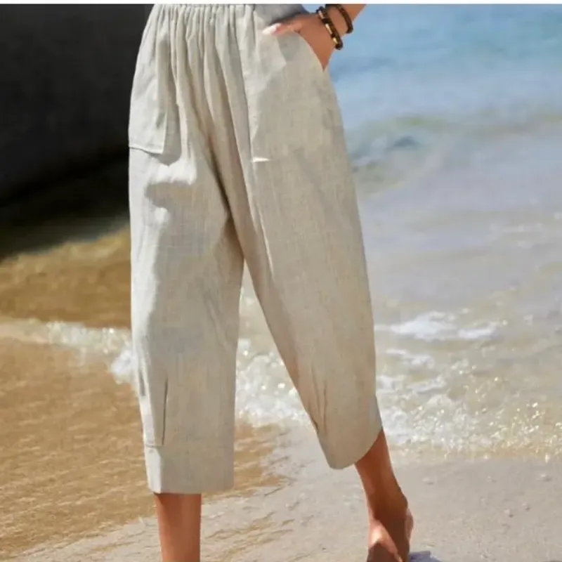 Pantalón de lino capris unicolor