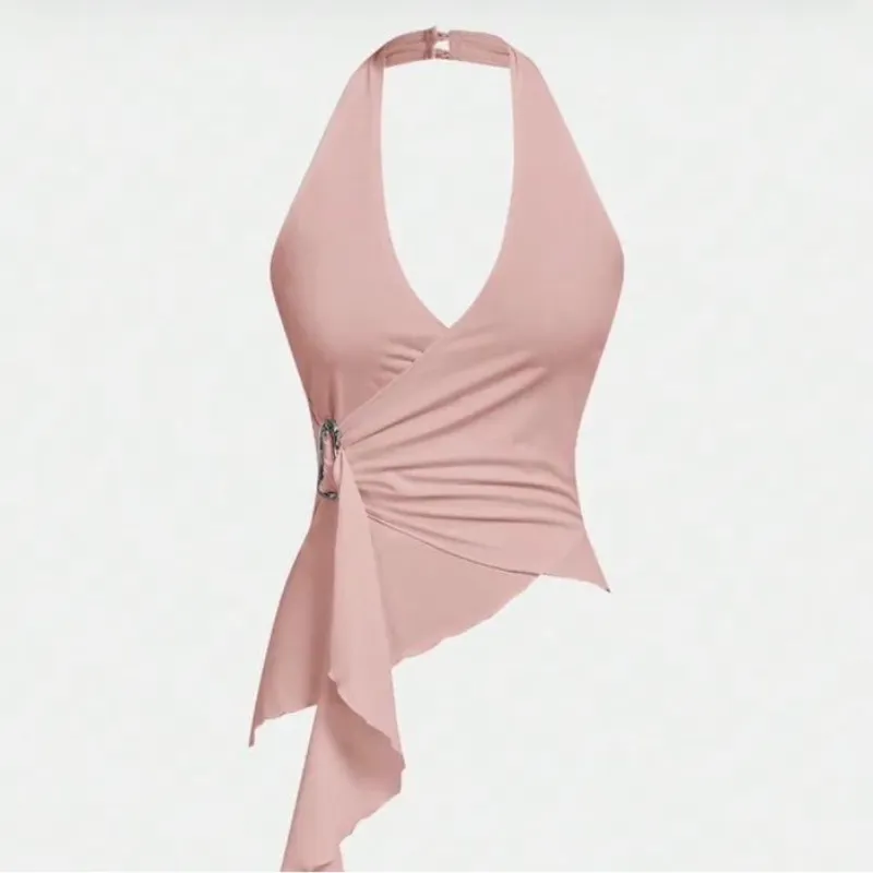 Top de rantes ajustado con hebilla metálica y bajo asimétrico