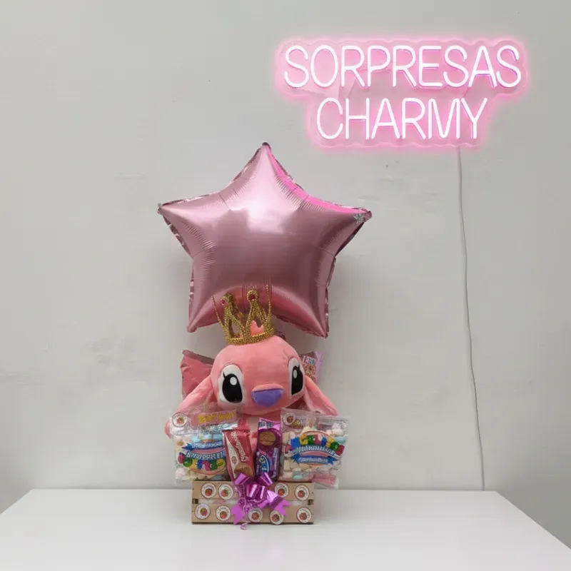 Caja con confituras decoración tematica Peluche de Stich mediano Mensajería gratis
