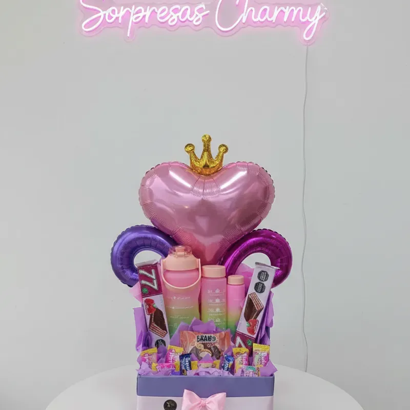 Caja con confituras y decoraci贸n tematica m谩s