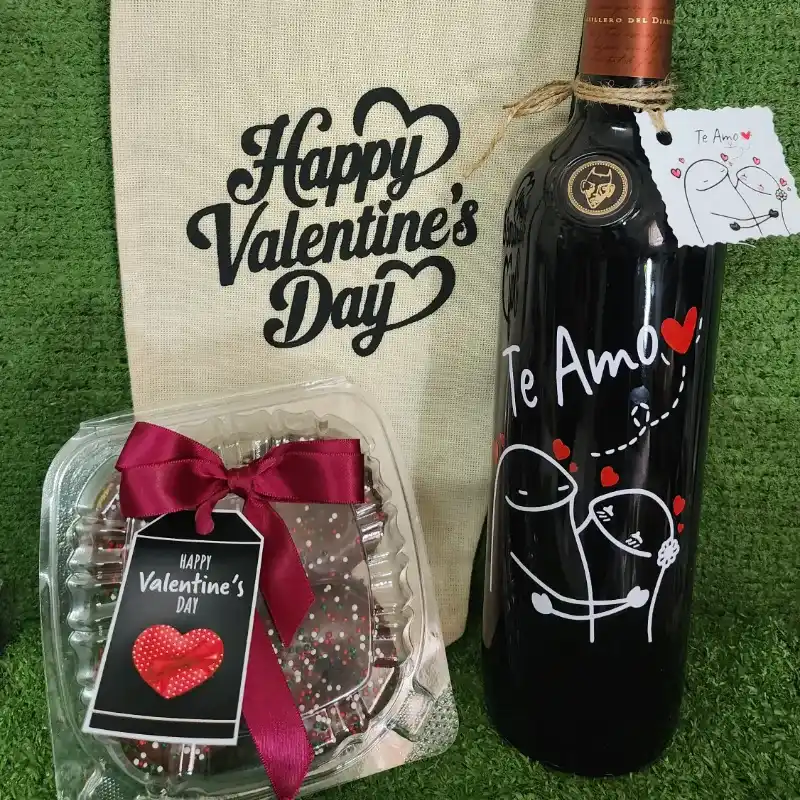 Oferta san Valentín combo con botella de vino