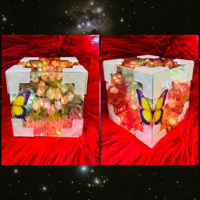 Tulipanes que no se marchitan 🌷 Cubos personalizados, creados para conservar recuerdos y emociones fuera de órbita.