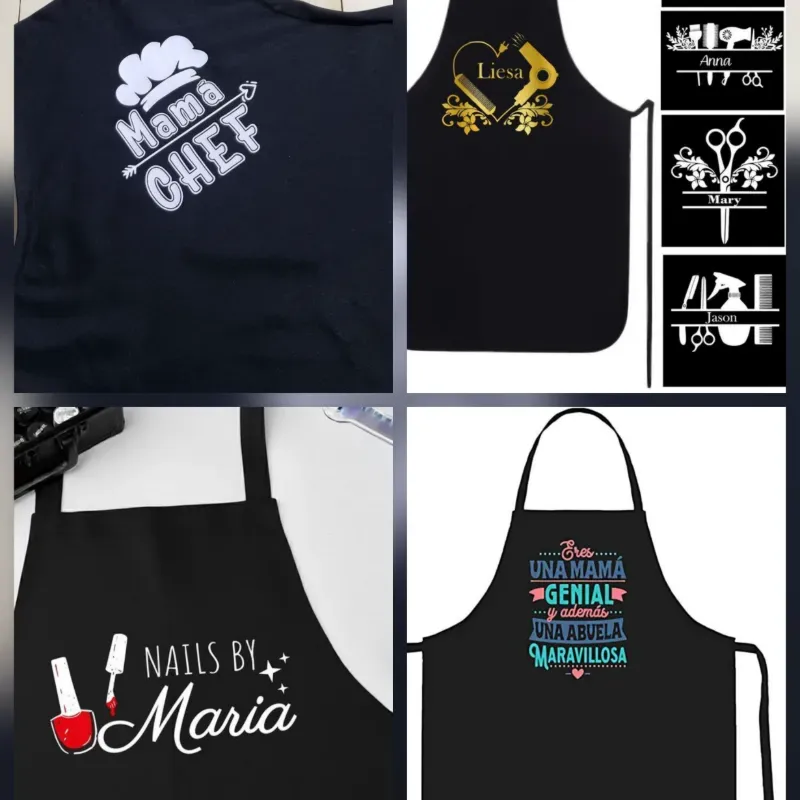 Delantal negro personalizado a tu estilo: tú eliges el diseño y nosotros lo hacemos realidad. Cómodo, resistente y con un acabado que convierte cualquier idea en protagonista. 🖤✨