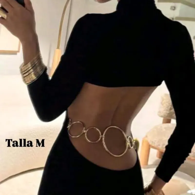 Vestido largo con abertura en la pierna y diseño de Aros en la espalda