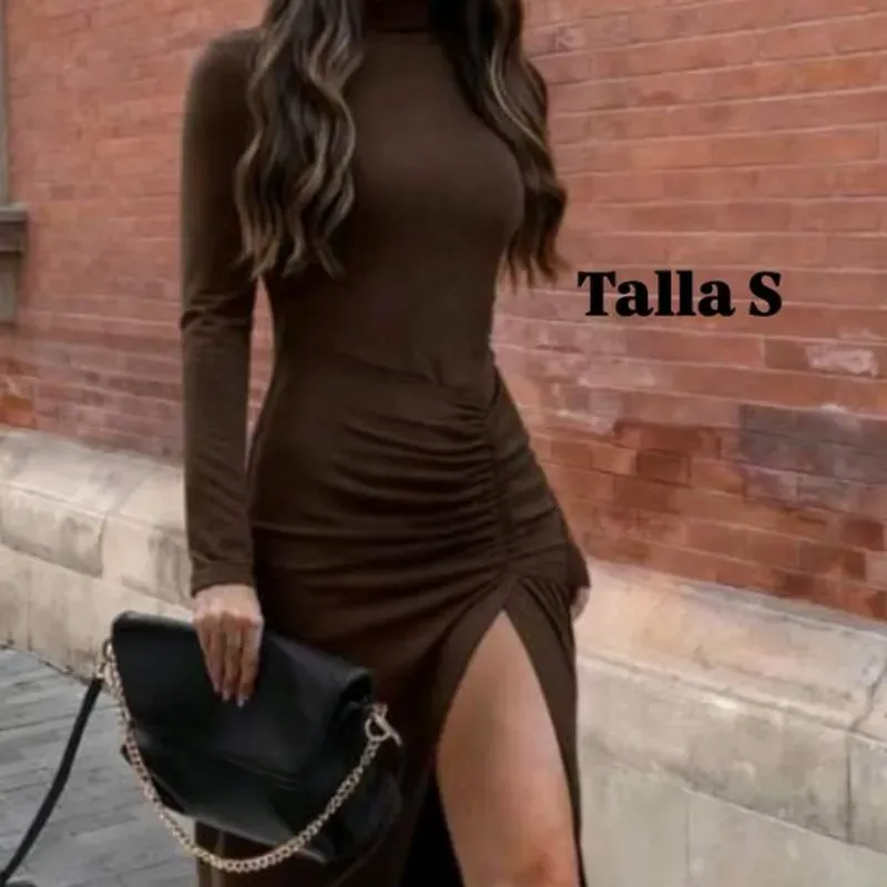 Vestido largo de mangas largas con abertura en la pierna