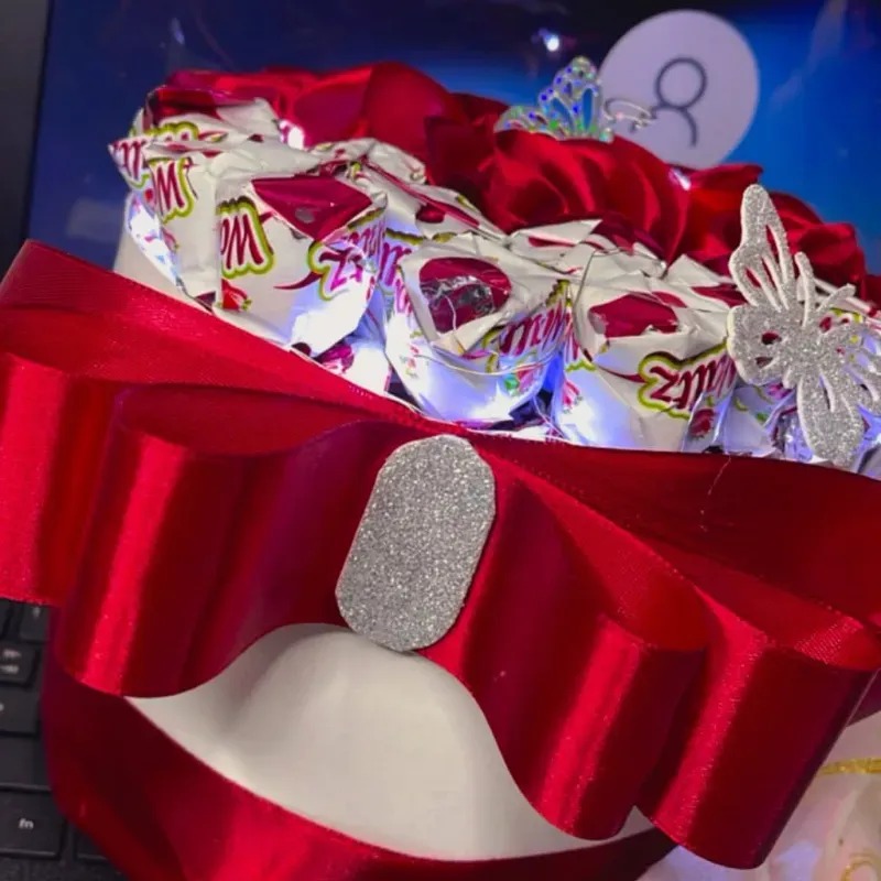 Caja Redonda Decorativa 🌸✨ Incluye: Flores eternas 🌹 Luces LED 💡 Bombones 🍫 Cinta decorativa 🎗️ Lazo elegante 🎀 Mariposa decorativa 🦋