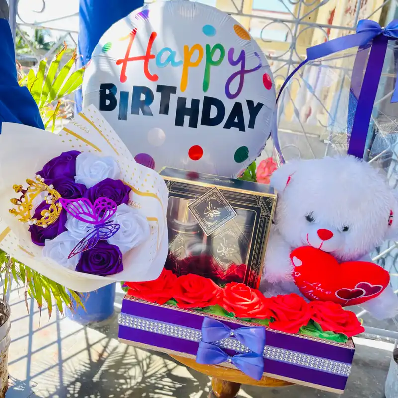 Cesta de regalo+oso de peluche+confitura+set de perfume y crema