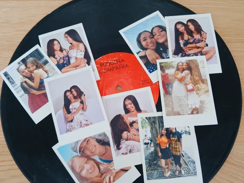 20 fotos polaroid de 9x6cm con cinta doble cara por detras para pegarlas en la pared. Se le puede añadir una tira de luces led de 2 metros por costo adicional.