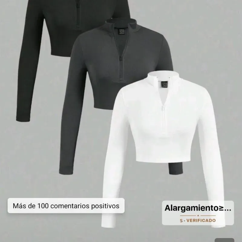Camiseta de mujer de manga larga con cremallera y cuello alzado