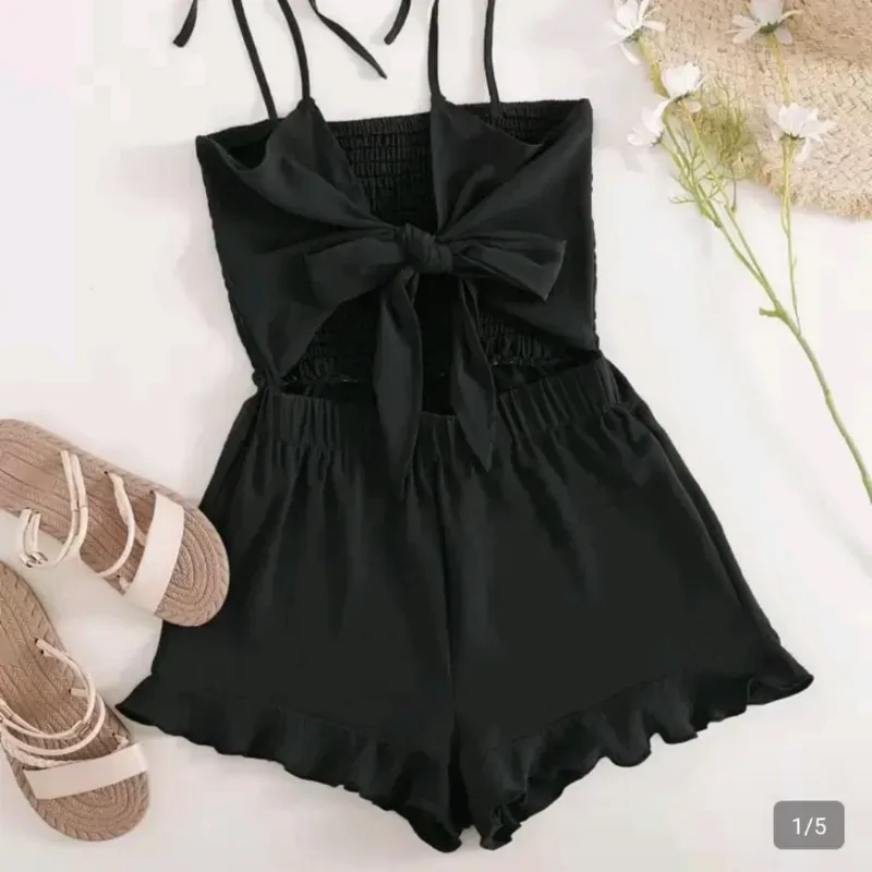 Enterizo tipo cami con detalle de nudo y dobladillo con volantes