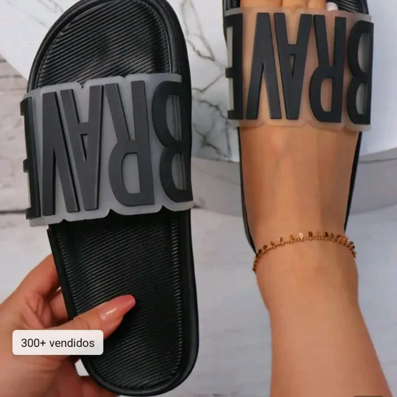 Sandalias de banda única con detalle de letra de la marca Brave