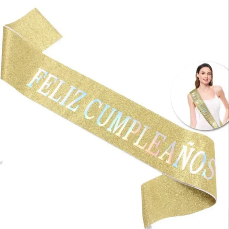 Banda Satinada de Cumpleaños > Dale un toque de distinción al cumpleañero con nuestra banda de alta calidad. Disponible en varios colores con letras metalizadas.