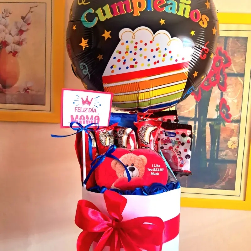 Caja con confituras y globo