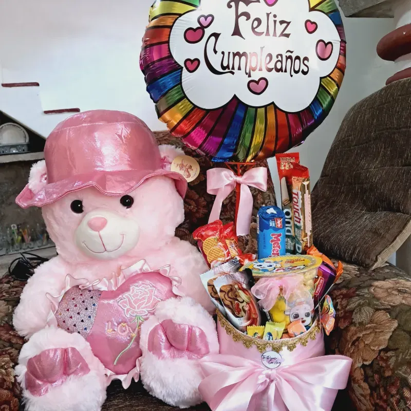 Oso grande y caja de confituras,
