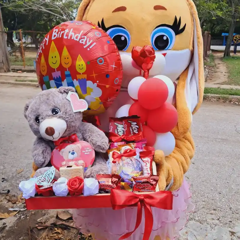 Bandeja de peluche de 25 cm , caja de bombones y confituras