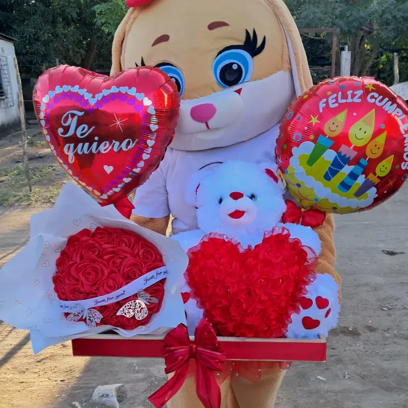 Peluche grande con ramo de 20 rosas